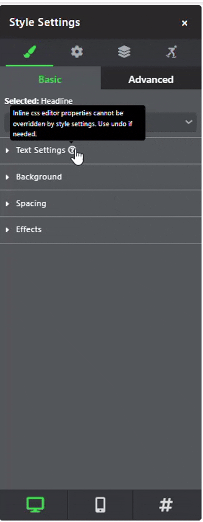 After selecting a text component, click on Personal Settings to access advanced customization options.Style Settings Overview