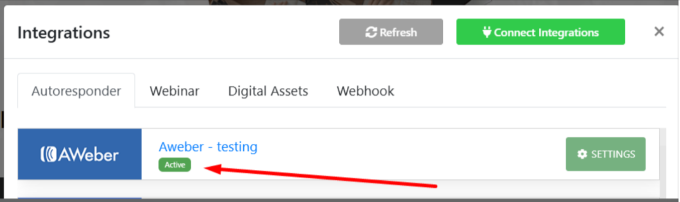 Here we are connecting the Aweber account for example.