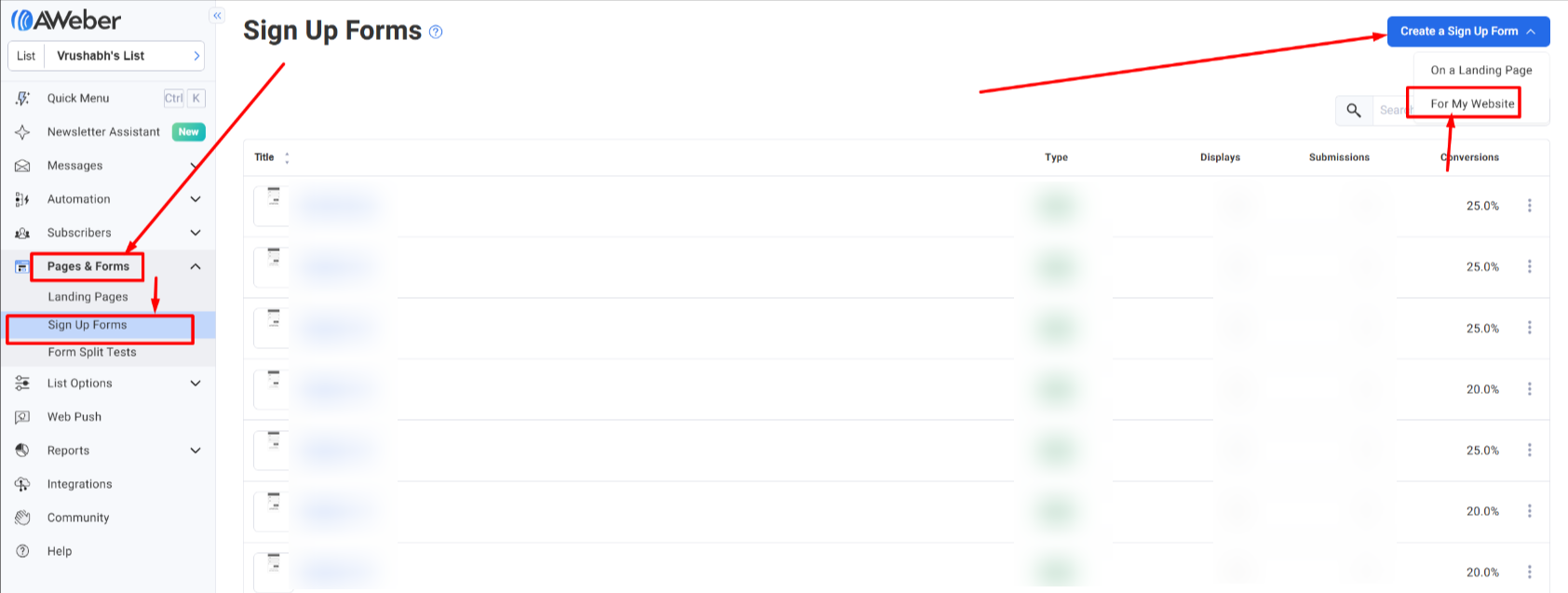Login to your AWeber account Dashboard, and click on Signup Forms from the dashboard panel.