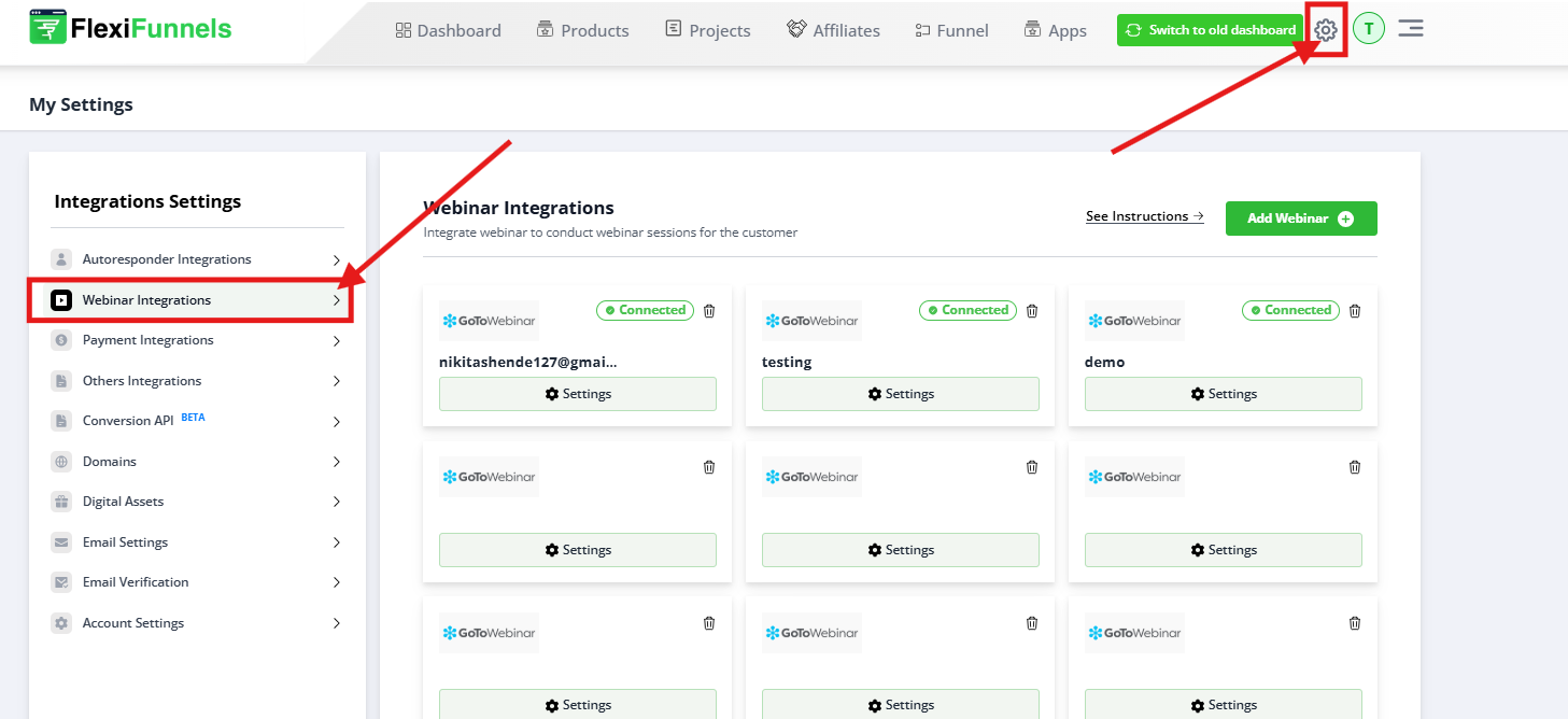 your account is connected with GOTO Webinar and the screen will be redirected to the FlexiFunnels settings page.