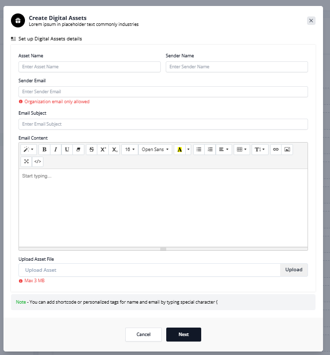 Enter a name for your digital asset (e.g., “Free SEO Guide”)Sender Name: