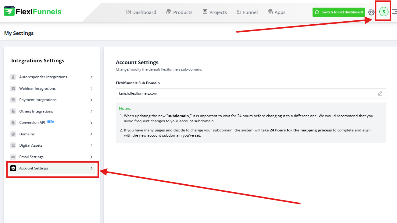 You’ll find a field to enter your FlexiFunnels Subdomain Name.
