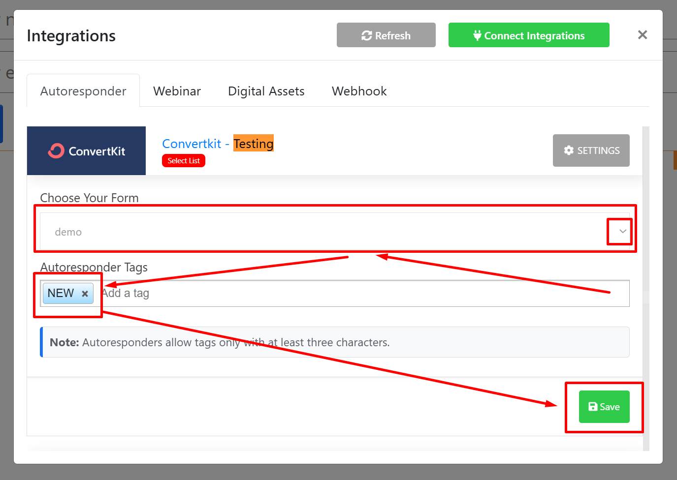 And write down the tag to be passed in the autoresponder tags field. (optional)