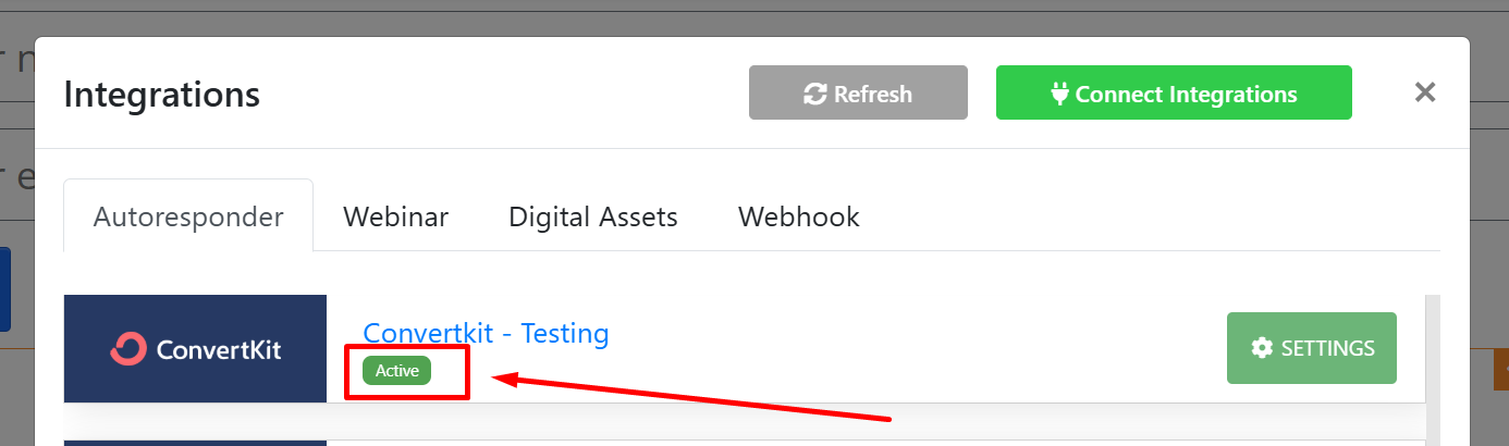 4. Click on the "connect" button to add the "ConverKit" Autoresponder.