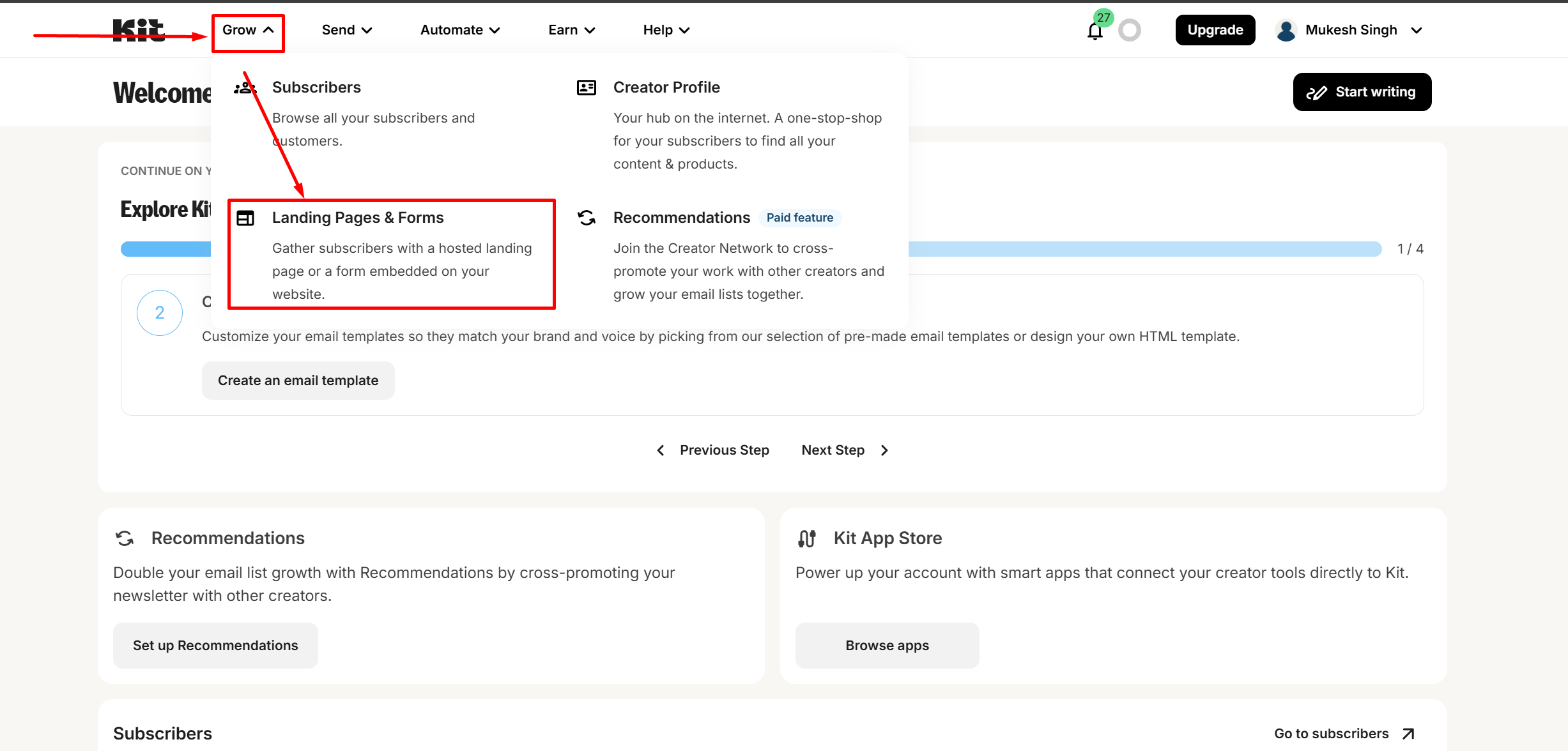 Login to your ConvertKit account Dashboard, and click on Signup Forms from the dashboard panel.