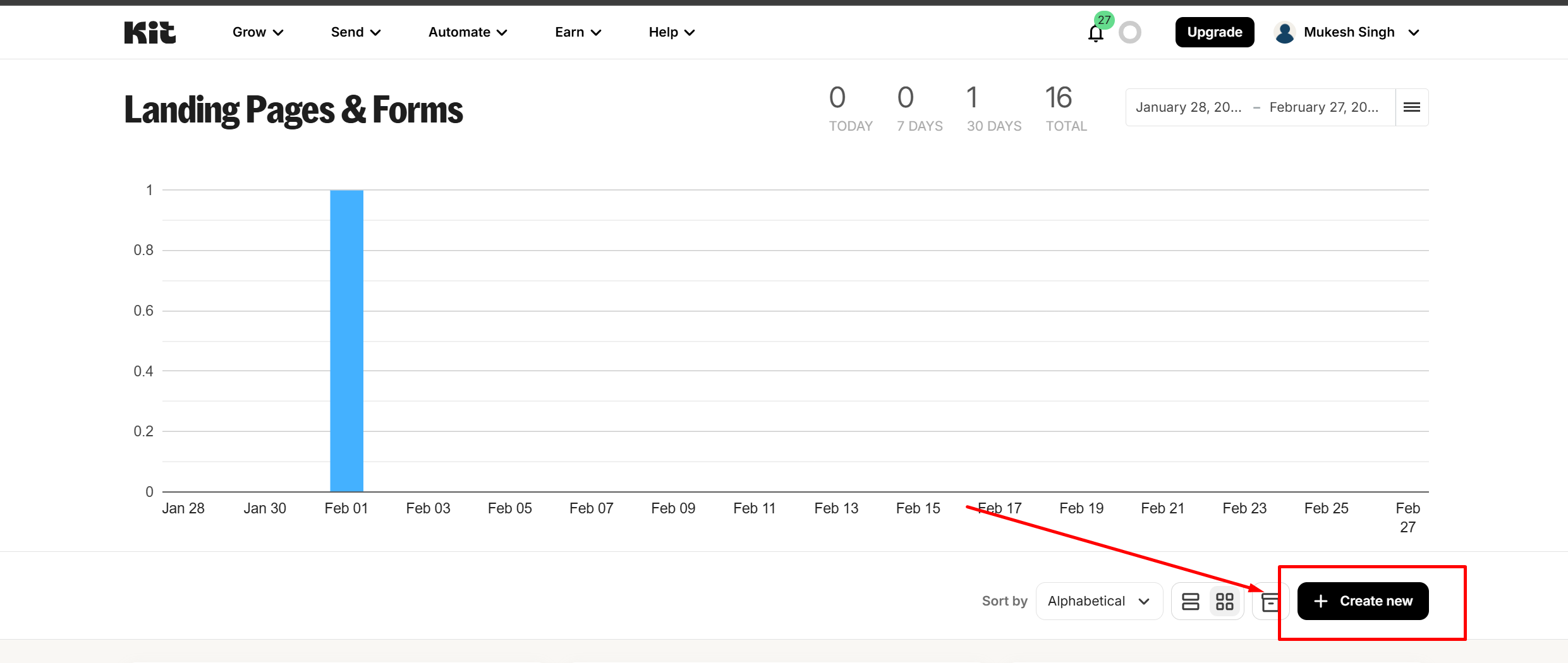 In order to connect a “form” element with HTML Form code, one needs to create a landing page inside a project.