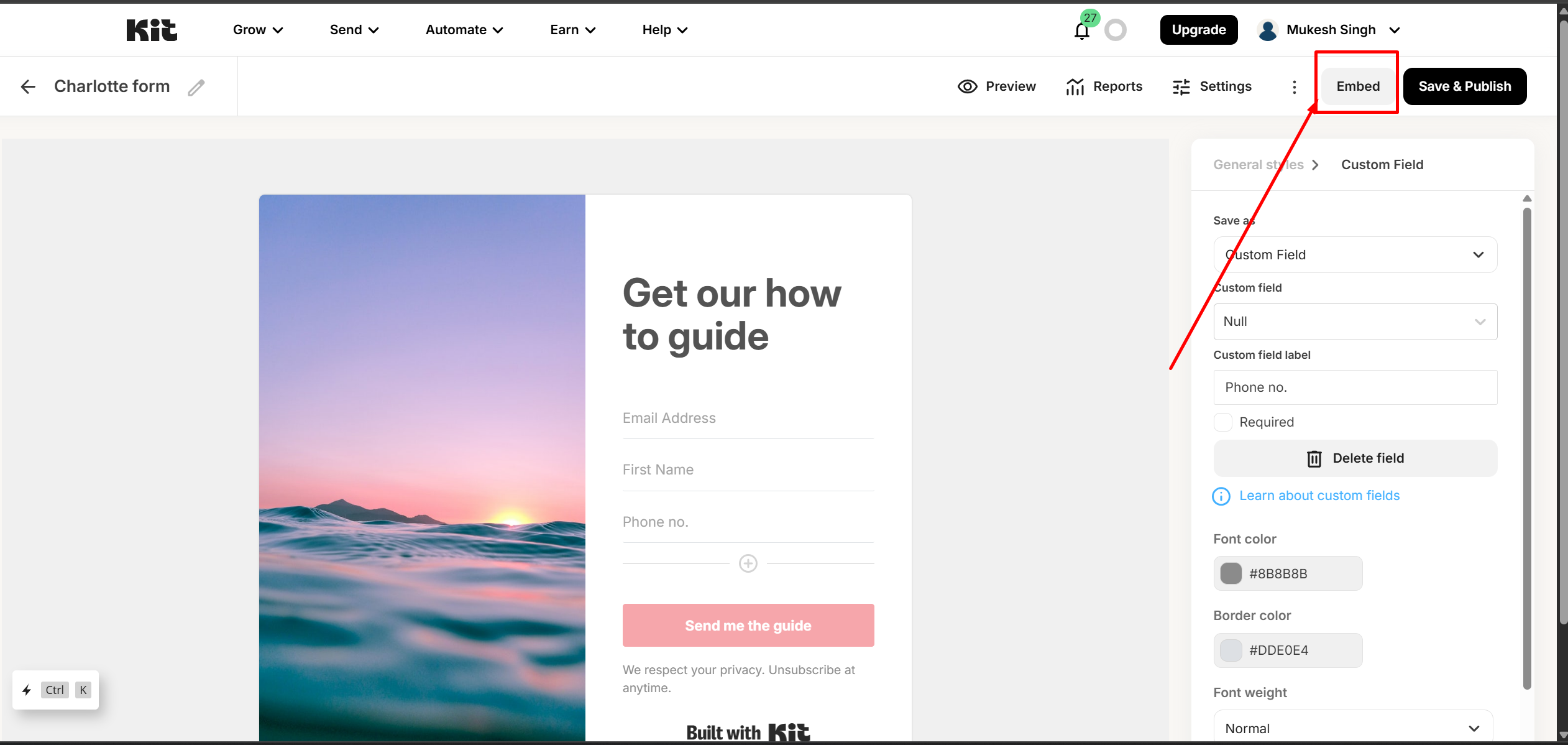 On the last step of the form, click on "Embe option" and copy the HTML code.