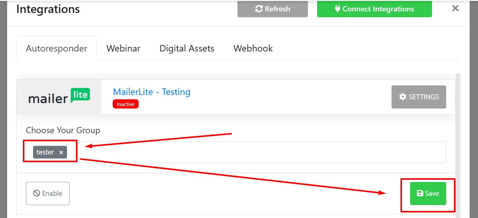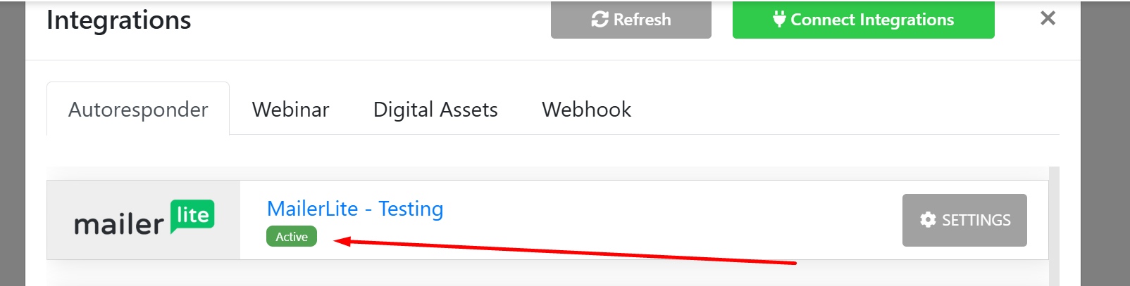2. In Integration, you will get the "Mailerlite API" option.