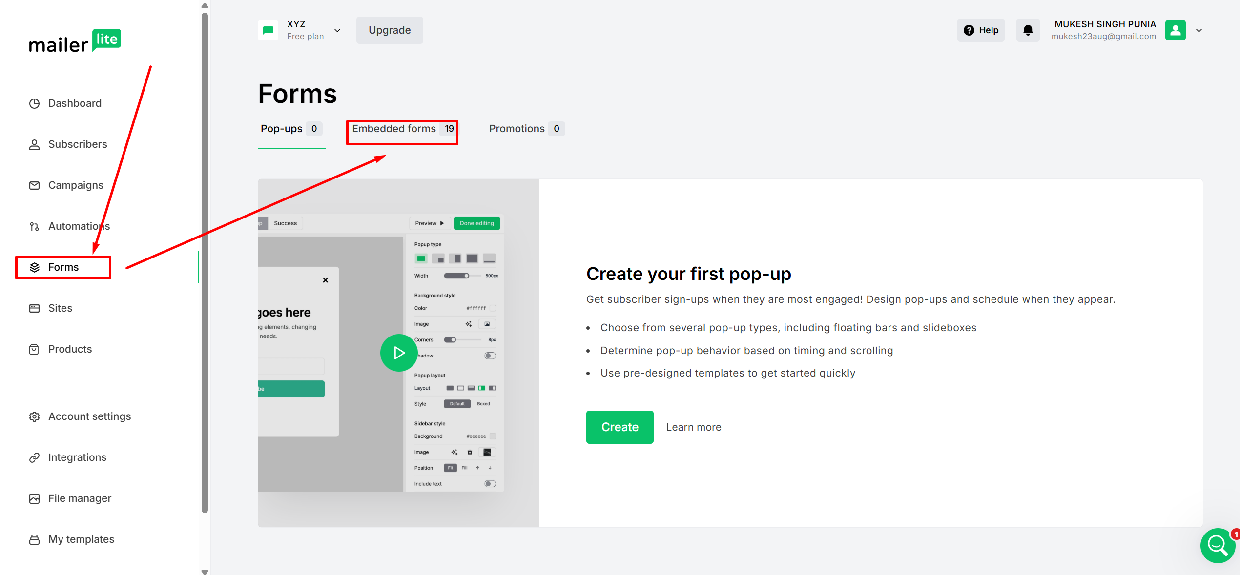Login to your MailerLite account Dashboard, and click on Signup Forms from the dashboard panel.
