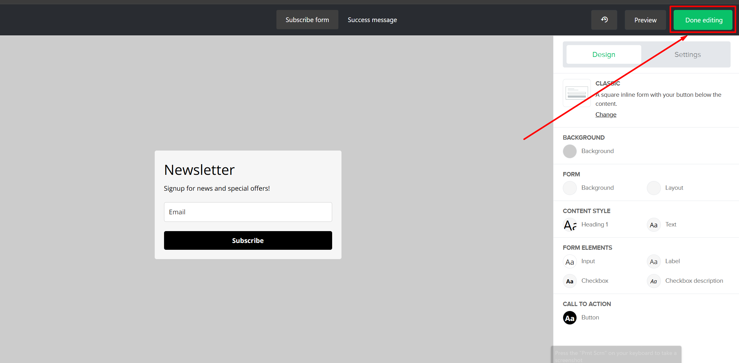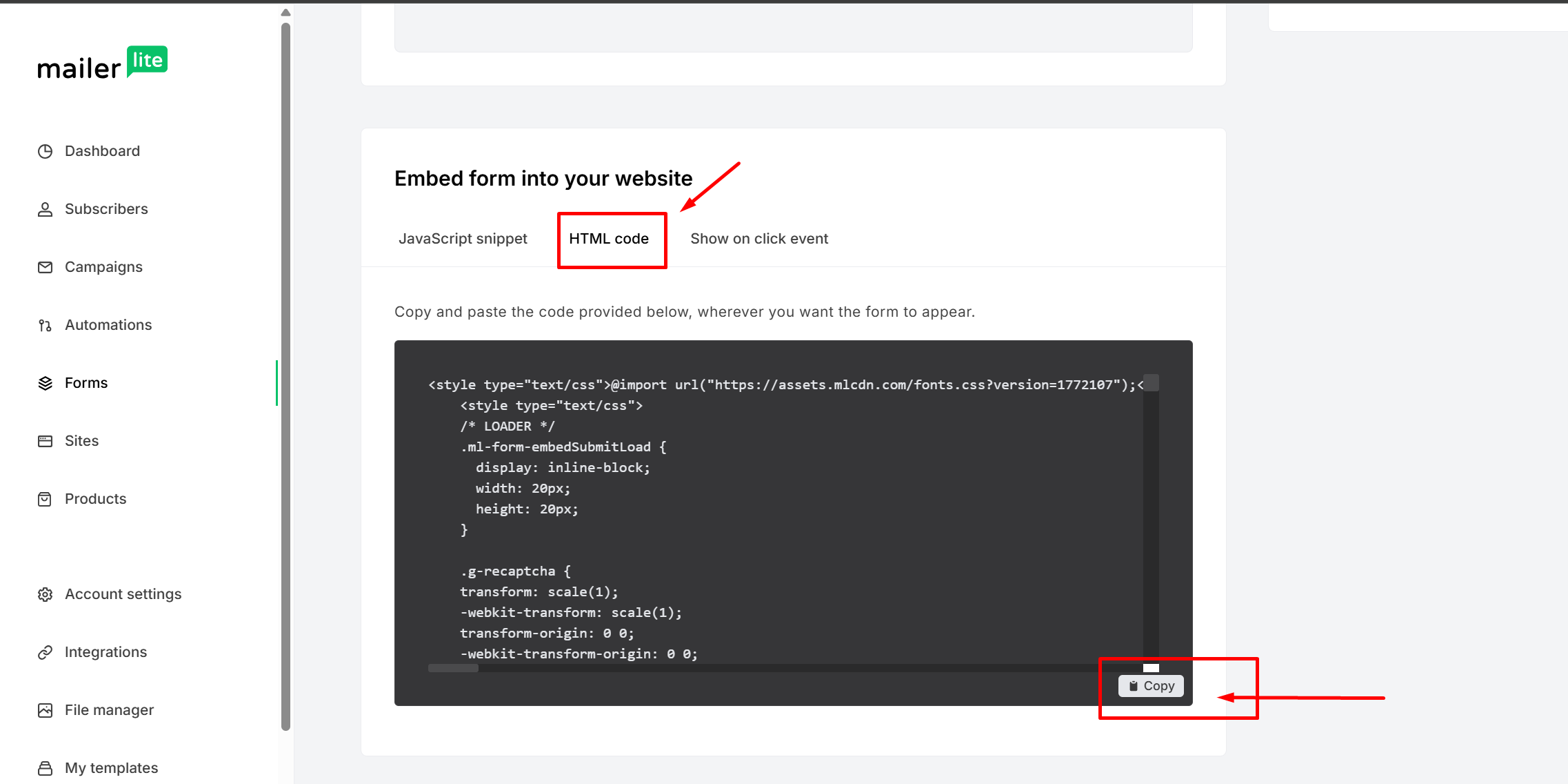 On the last step of the form, click on "Done Editing" and copy the HTML code.