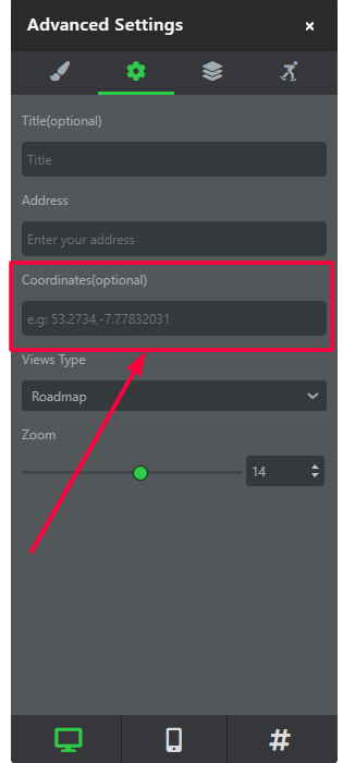 3. After that right click on the searched location and there you will get the coordinates in the numerical format copy it and just paste it in the coordinates option inside the map element.