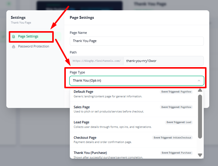 Choose the Correct Page Type Inside Your FlexiFunnels Project for Accurate Event Tracking.