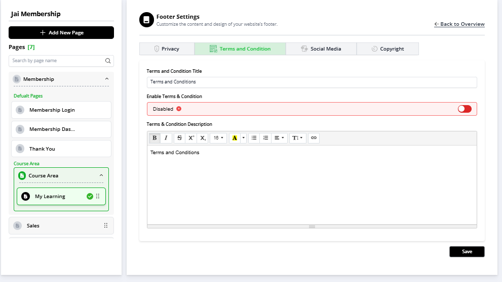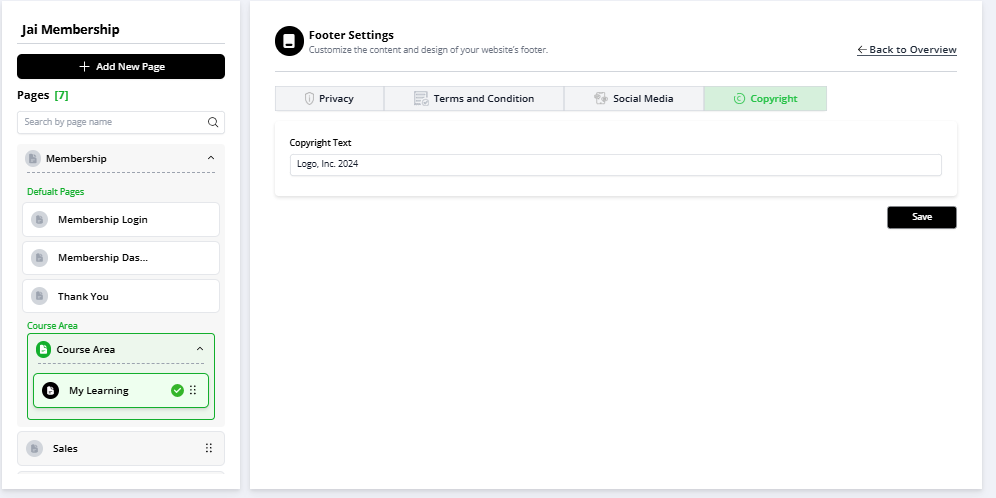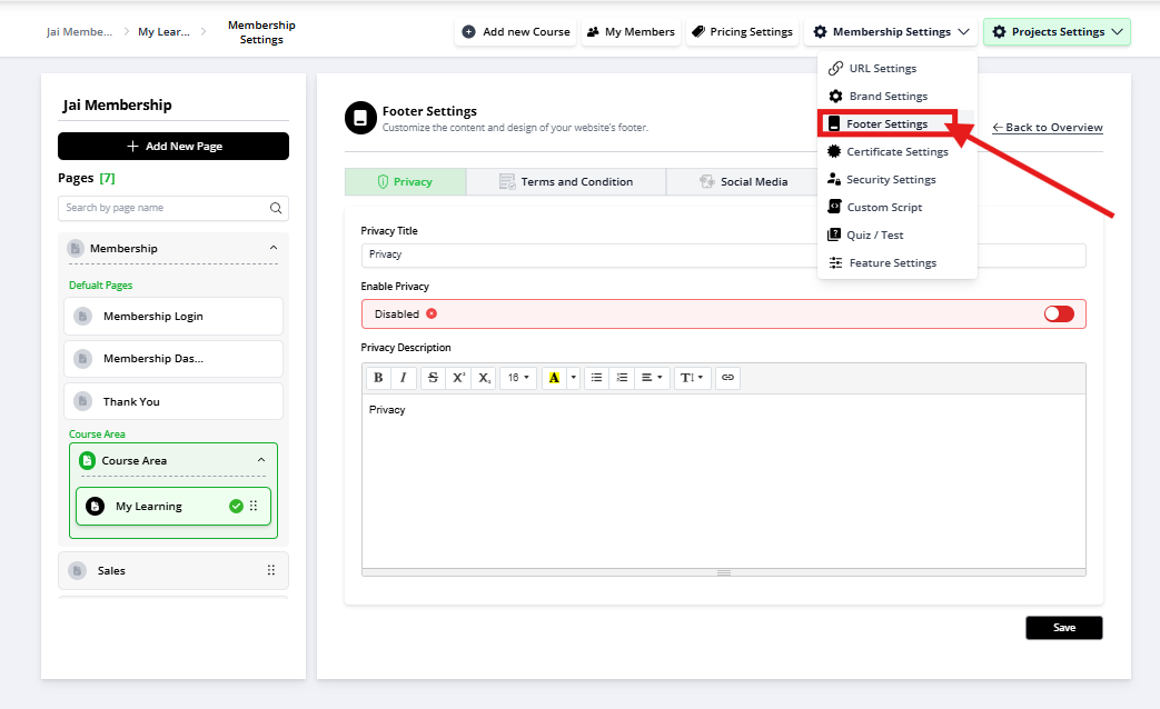 Membership Settings > Footer Settings