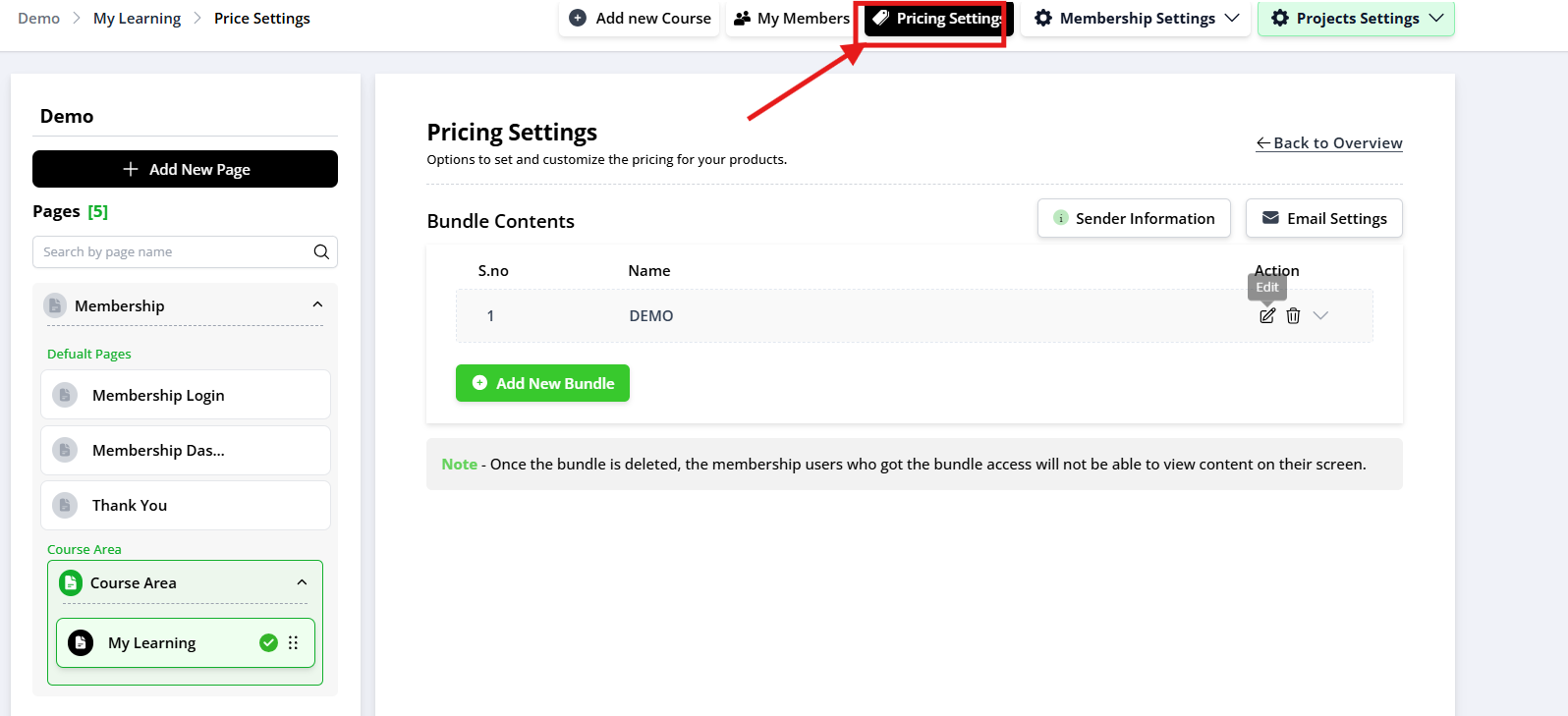 There, you will find the “Add Bundle” option — add a bundle inside the Membership Project.