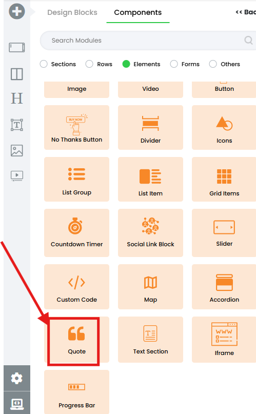 Drag and drop the quote block onto your landing page wherever you want it to appear.