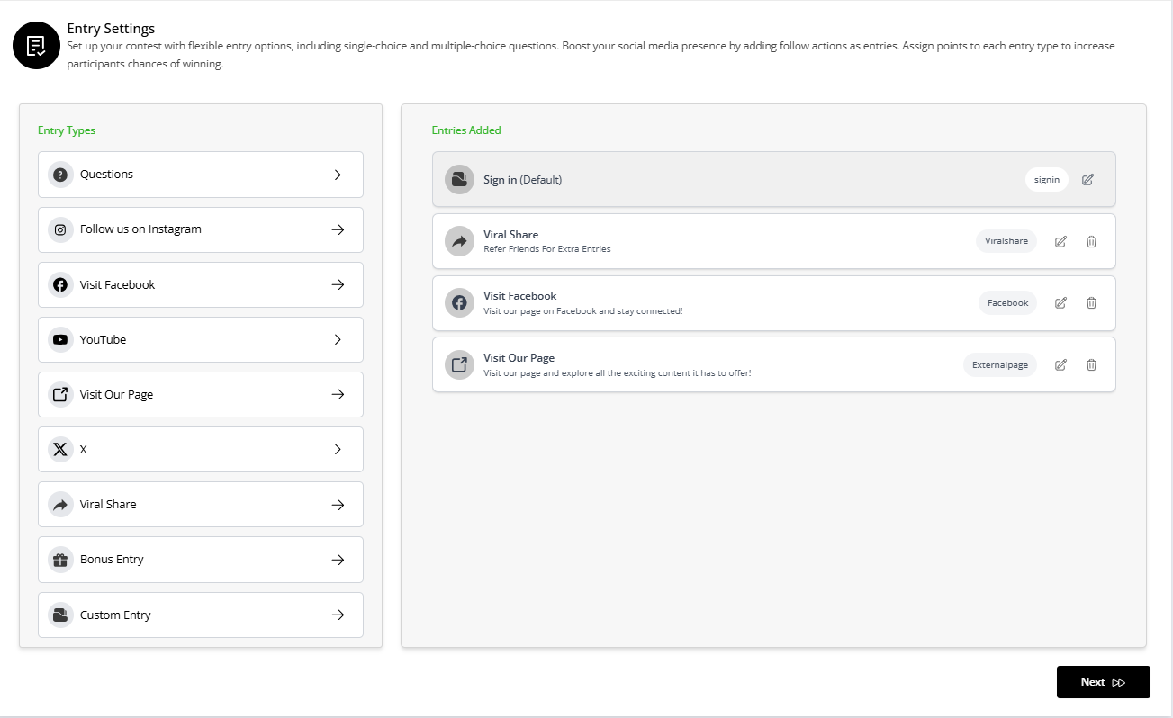? Tip: For each entry, set the proper link and assign “Entry Worth” (points participants earn).