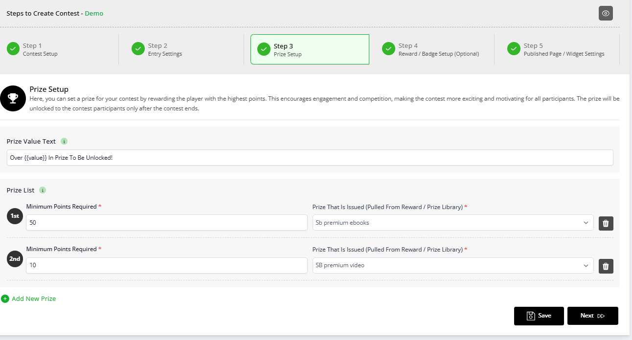 Go to My Contest → Create New Contest. You’ll see 4 main steps: