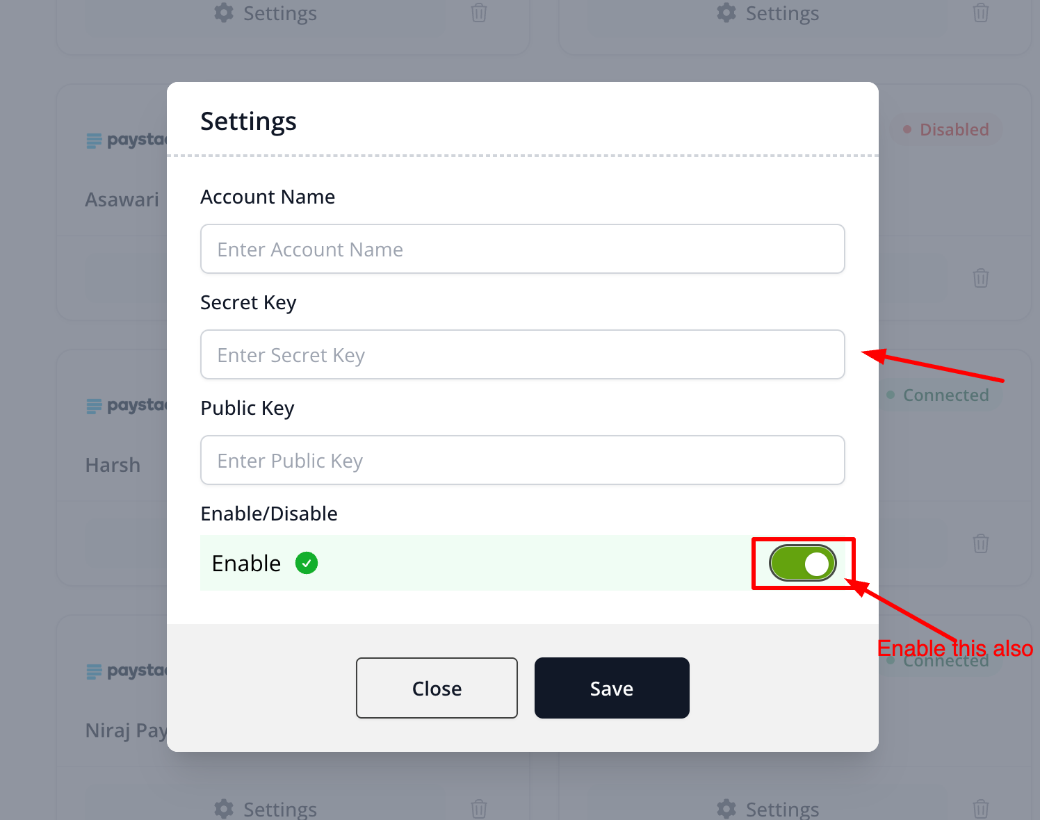 Return to FlexiFunnels and paste the Public Key and Secret Key in the required fields.